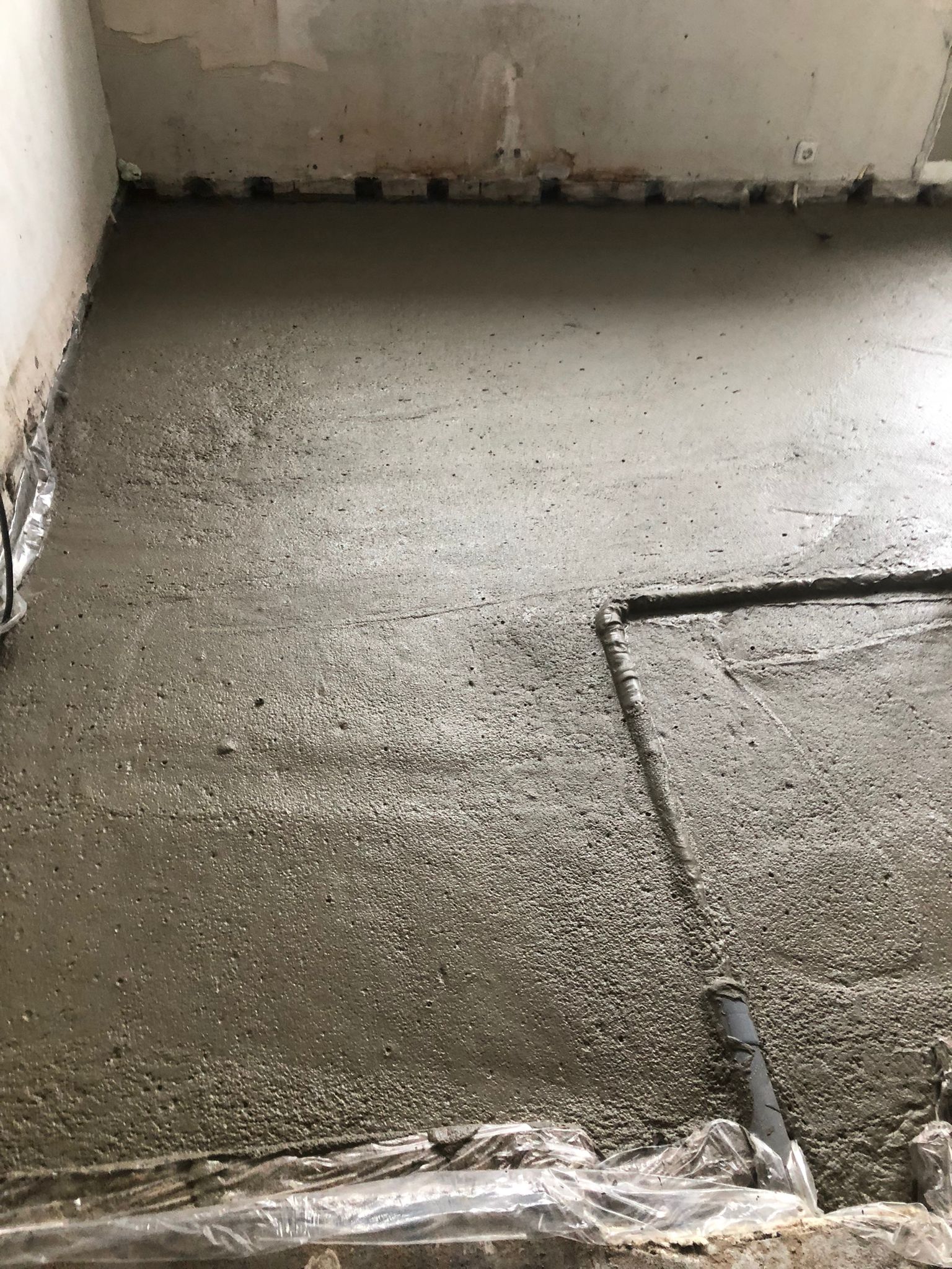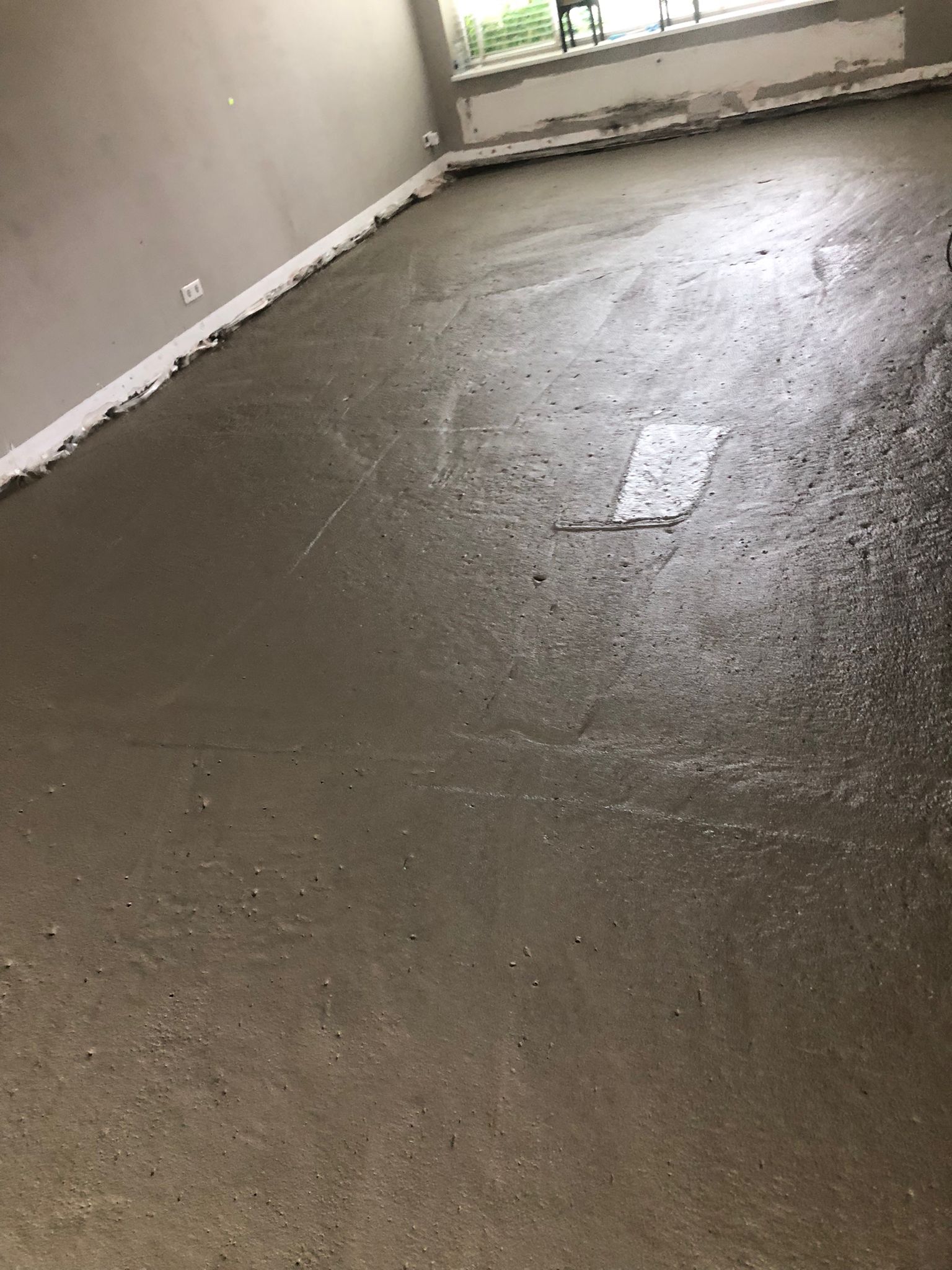 Na de installatie van de vloerverwarming hebben we de dekvloer aangebracht. De dekvloer, ook wel bekend als de afwerklaag, is cruciaal voor een gladde en stabiele basis waarop de uiteindelijke vloerbedekking (bijvoorbeeld: pvc, laminaat, tegels) kan worden geplaatst. Voor deze dekvloer hebben we gebruik gemaakt van een speciaal mengsel dat snel droogt, een hoge sterkte biedt én heel optimaal geleidt. We hebben hier namelijk een Eco2Floor dekvloer aangebracht.