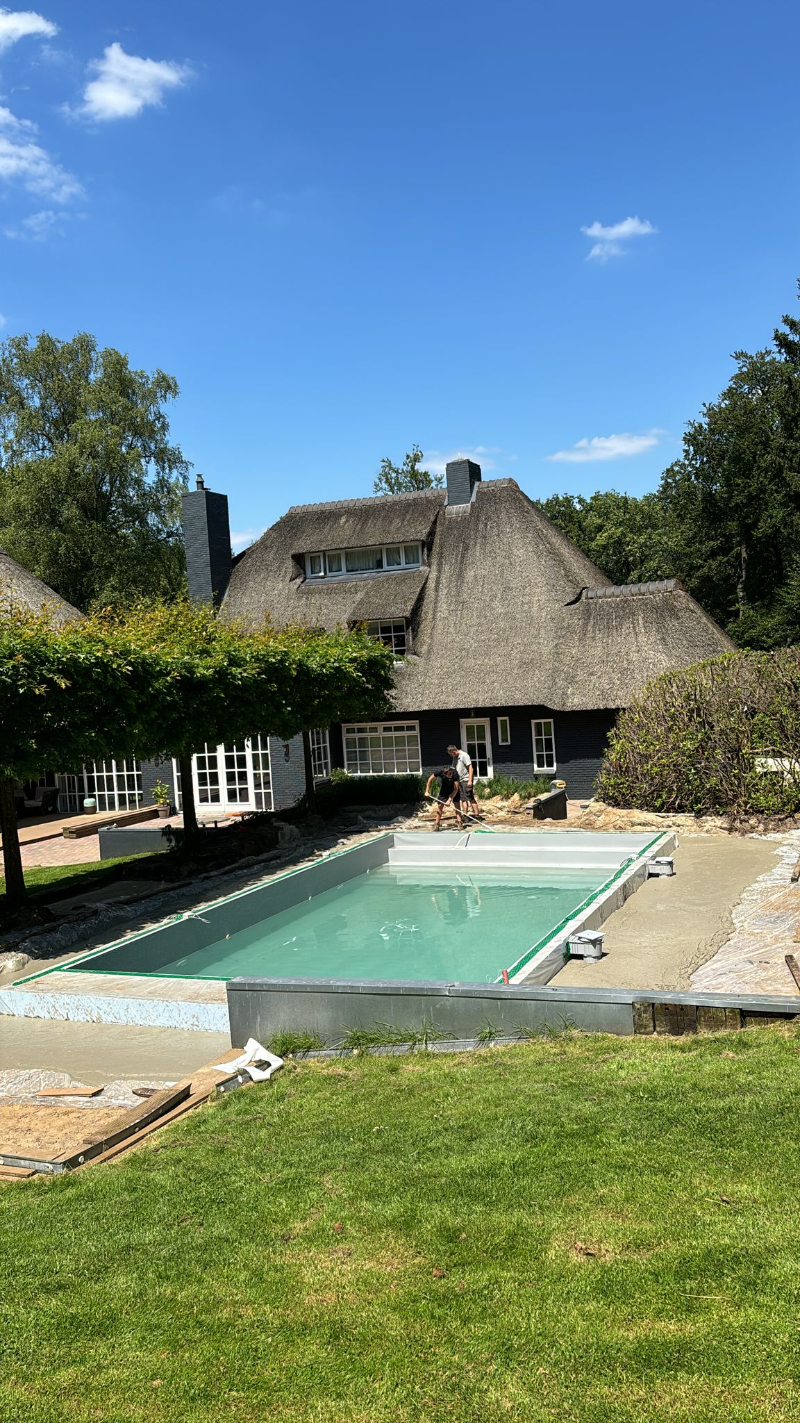 De installatie van Bull Schuimbeton rondom het zwembad verliep in verschillende fasen: