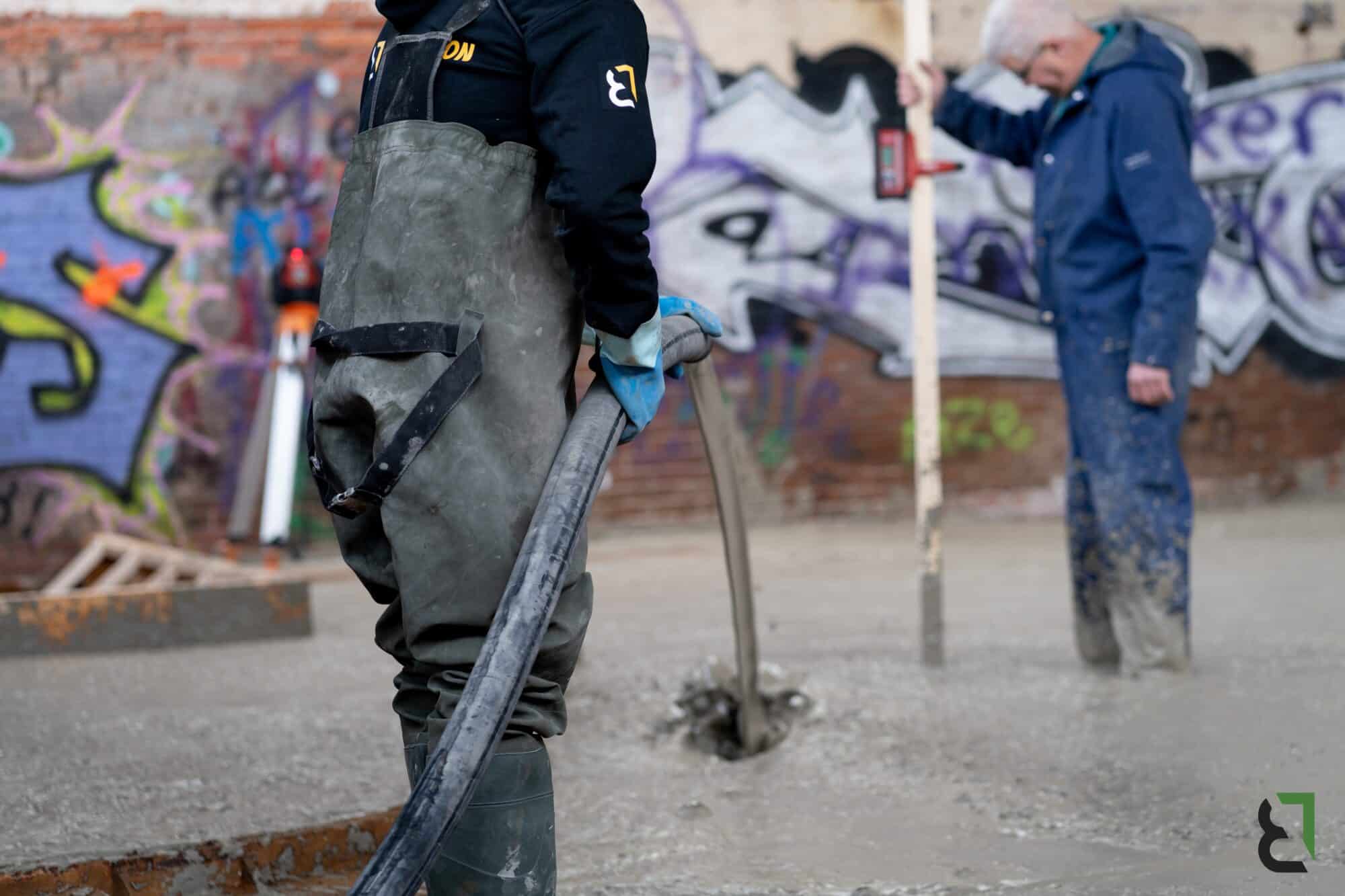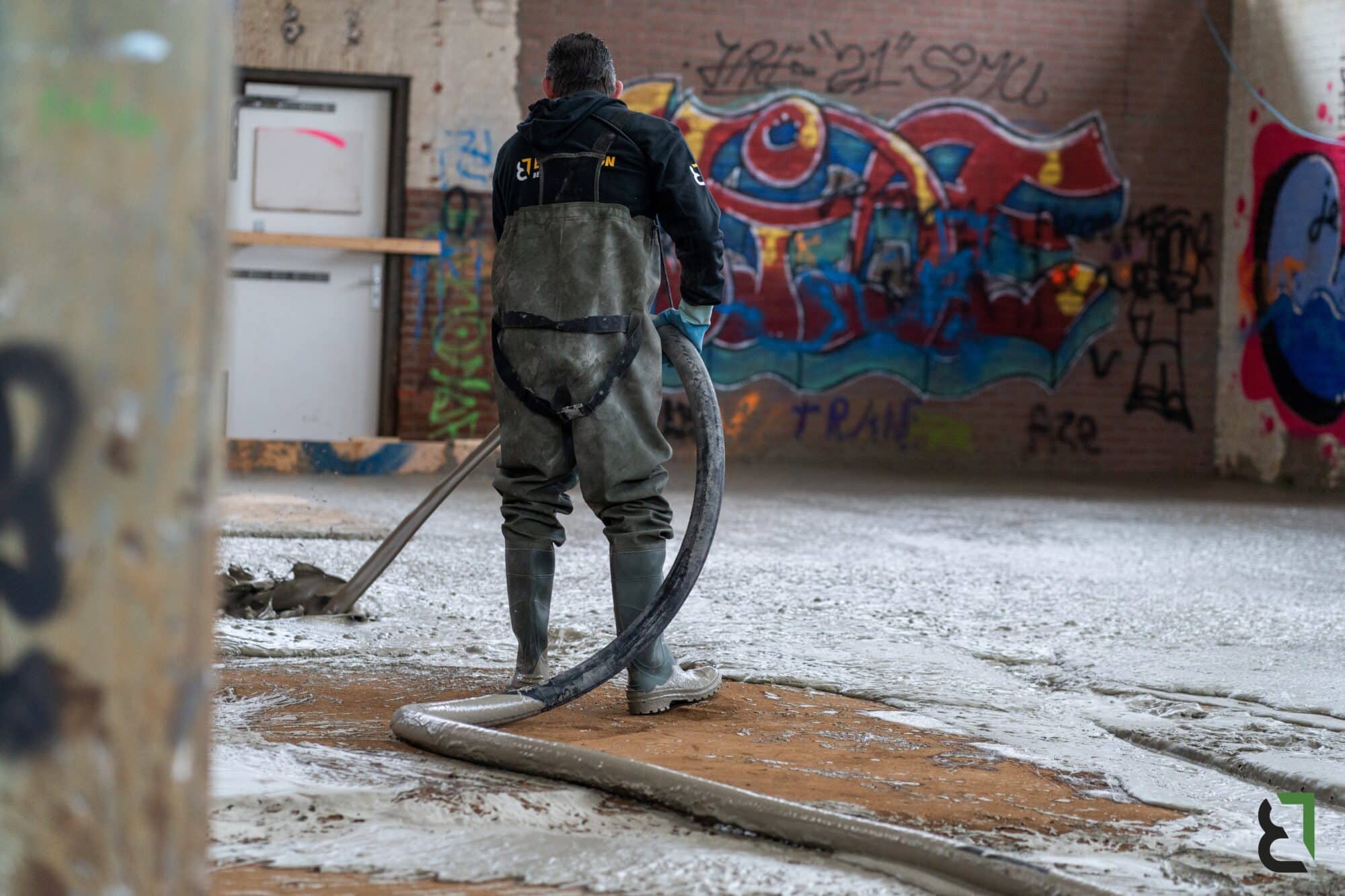 Doordat schuimbeton vrij vloeibaar is, is het erg makkelijk aan te brengen. Met onze eigen vrachtwagen kunnen we het schuimbeton door 2” slangen tot maar liefst 100 meter horizontaal en 25 meter verticaal pompen. Van zichzelf vlakt schuimbeton al redelijk goed uit. Zodra we het schuimbeton hebben gestort zullen onze specialisten het oppervlak van de schuimbetonvloer nog verder gladstrijken.